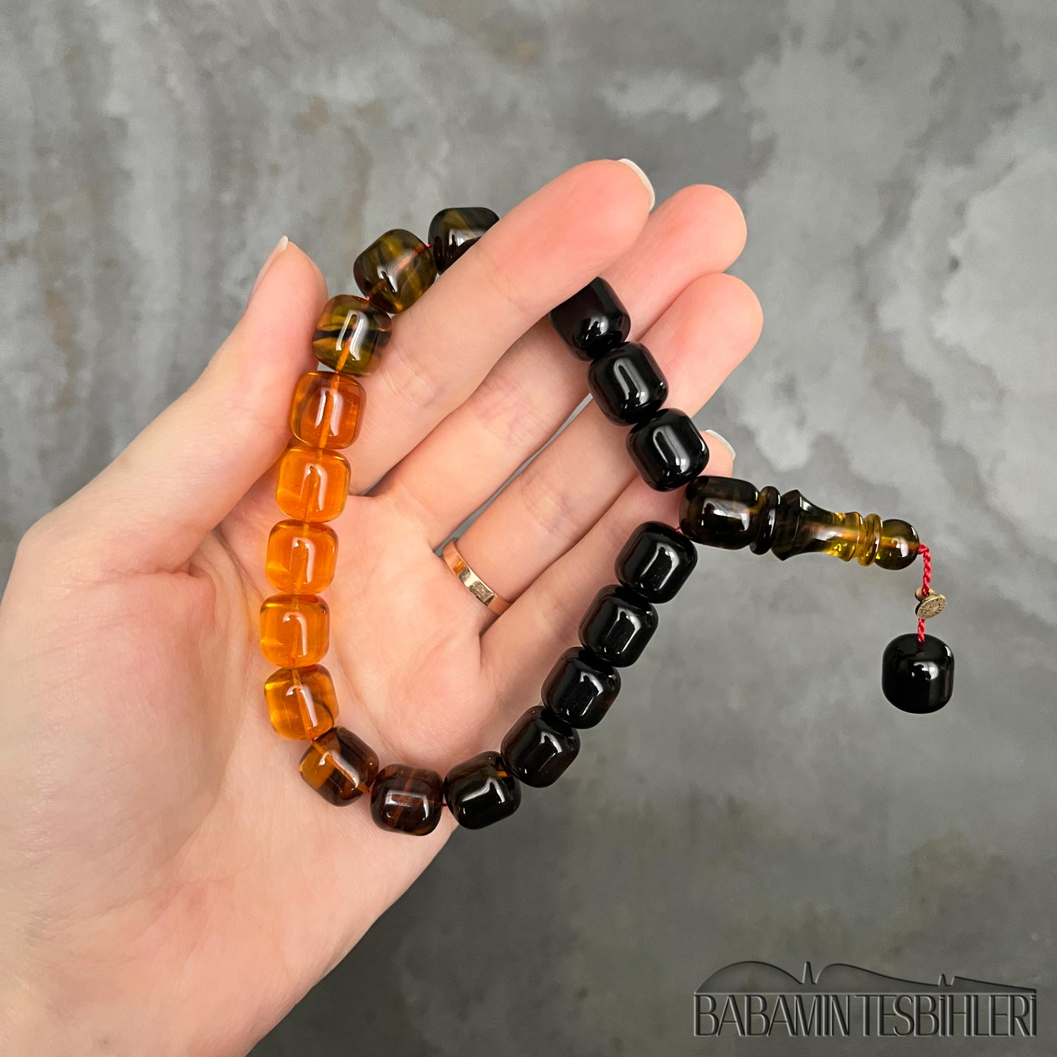 | Tesbih | Sıkma Kehribar | 11x13mm Dumanlı Süzme Dizim Kapsül Maskot Model Tesbih