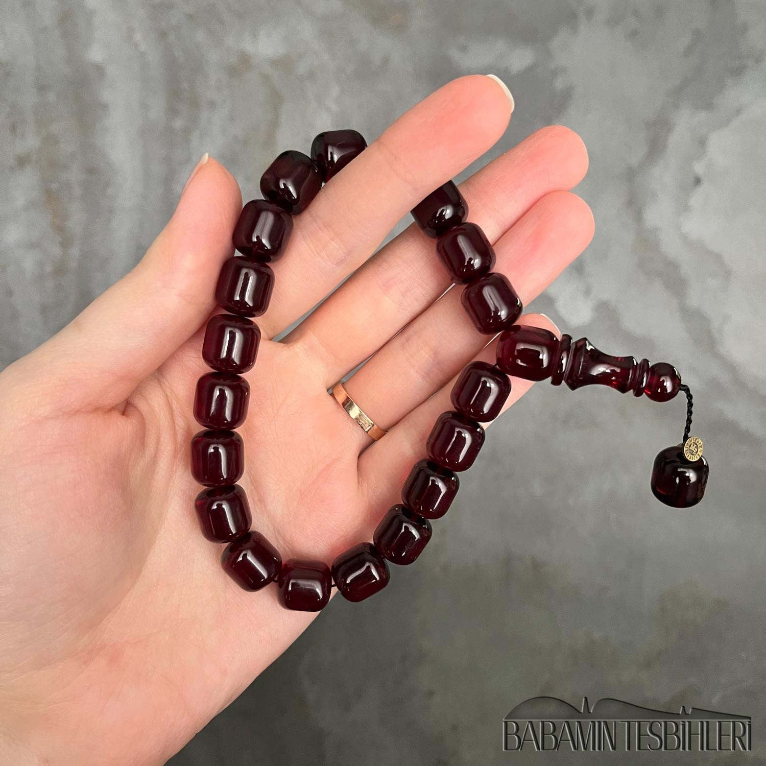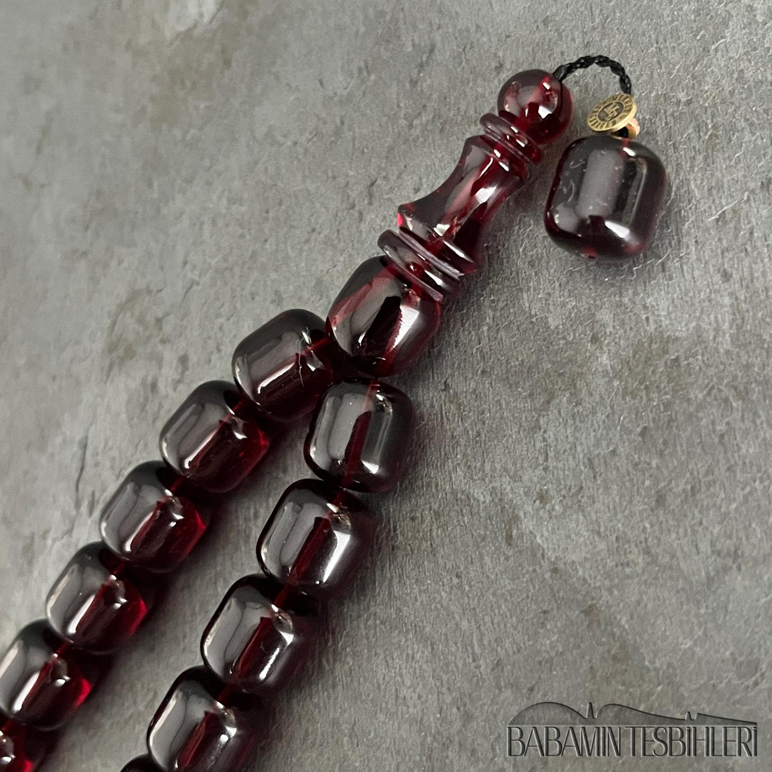 | Tesbih | Sıkma Kehribar | 11x13mm Koyu Kırmızı Kapsül Maskot Model Tesbih