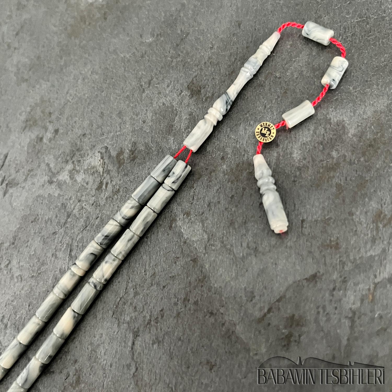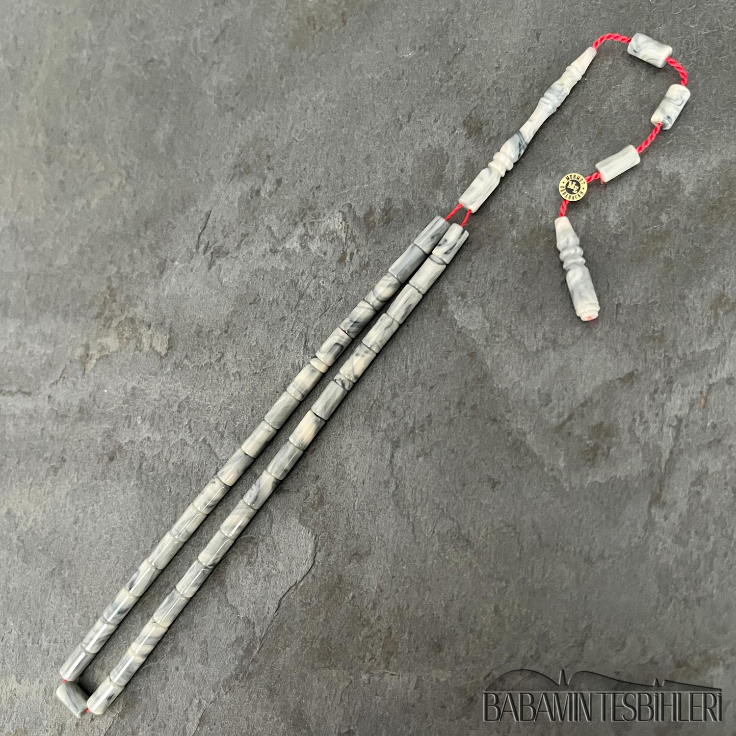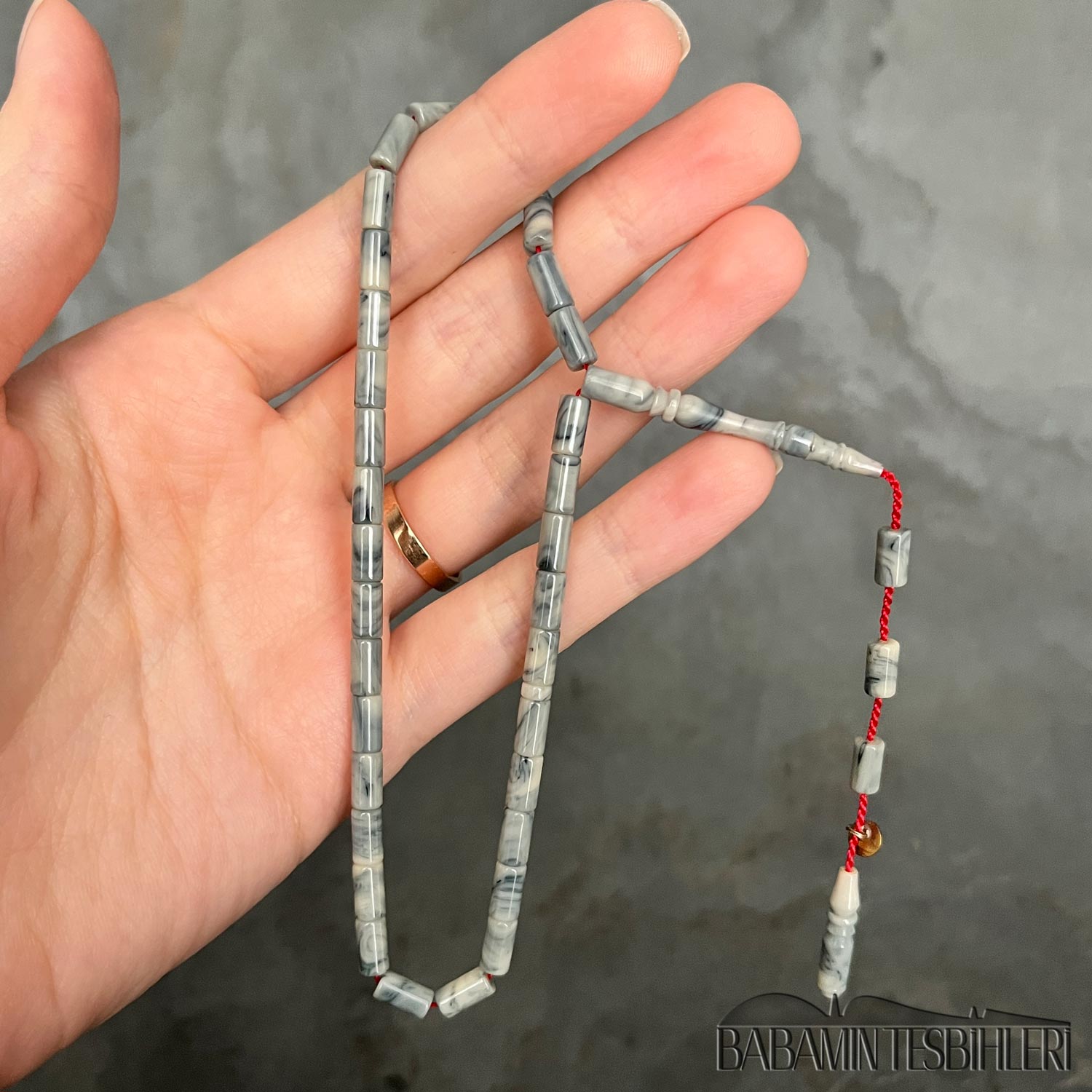 | Tesbih | Sıkma Kehribar | 4x7mm Mermer Desenli Küçük Boy Kesme Model Tesbih