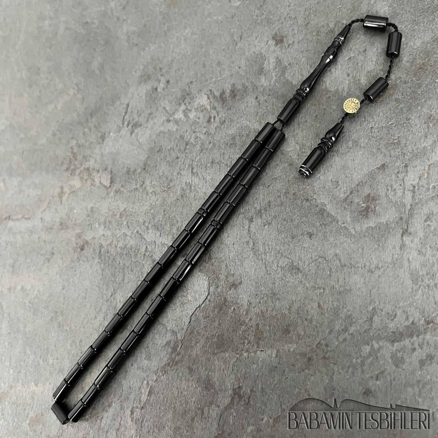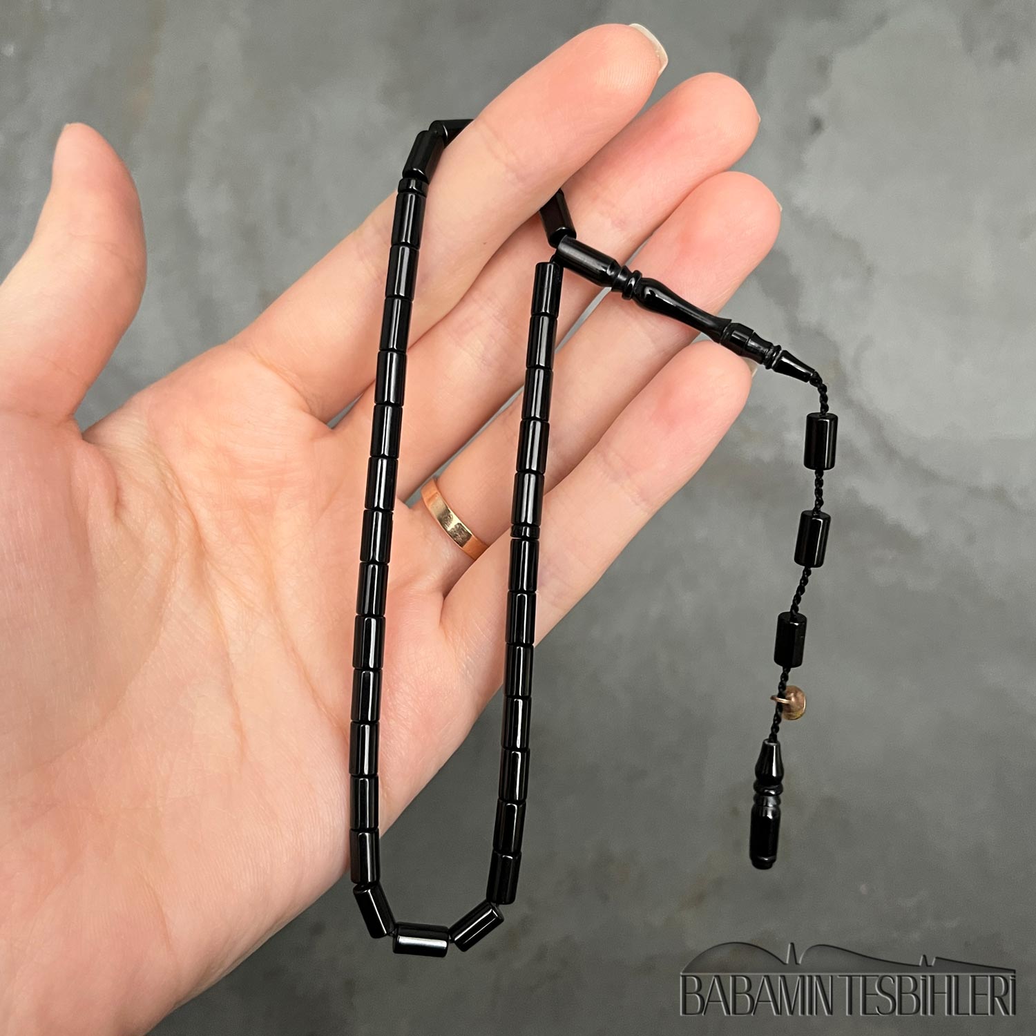 | Tesbih | Sıkma Kehribar | 4x7mm Siyah Küçük Boy Kesme Model Tesbih