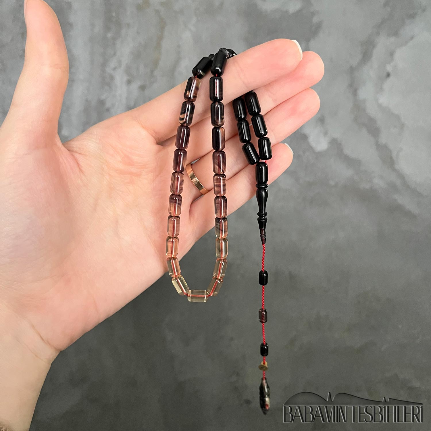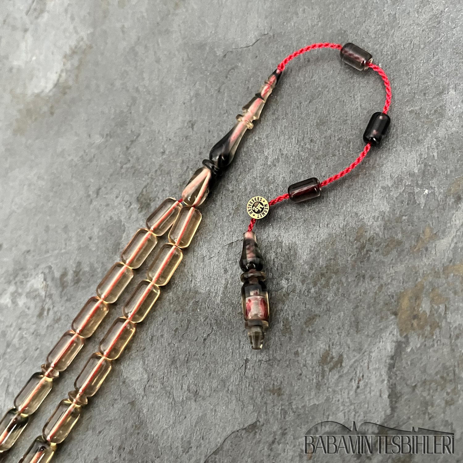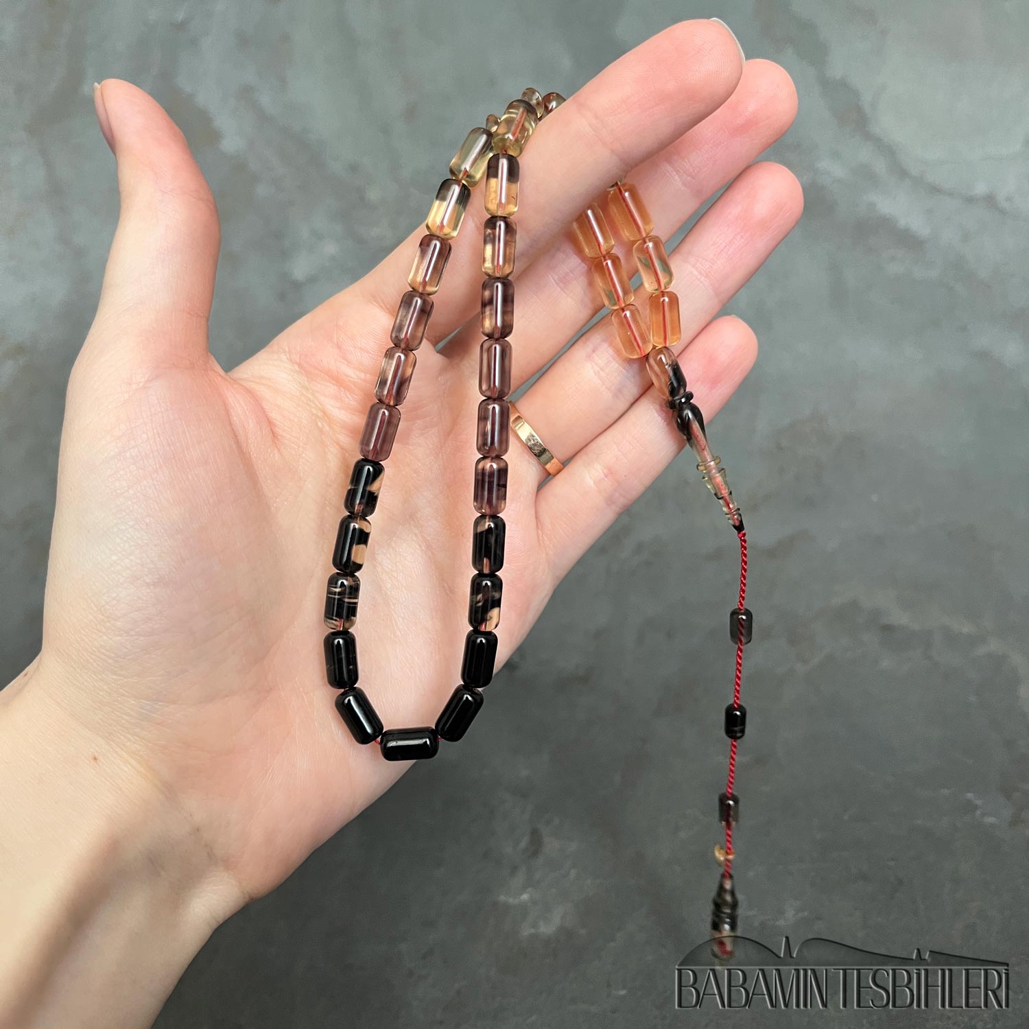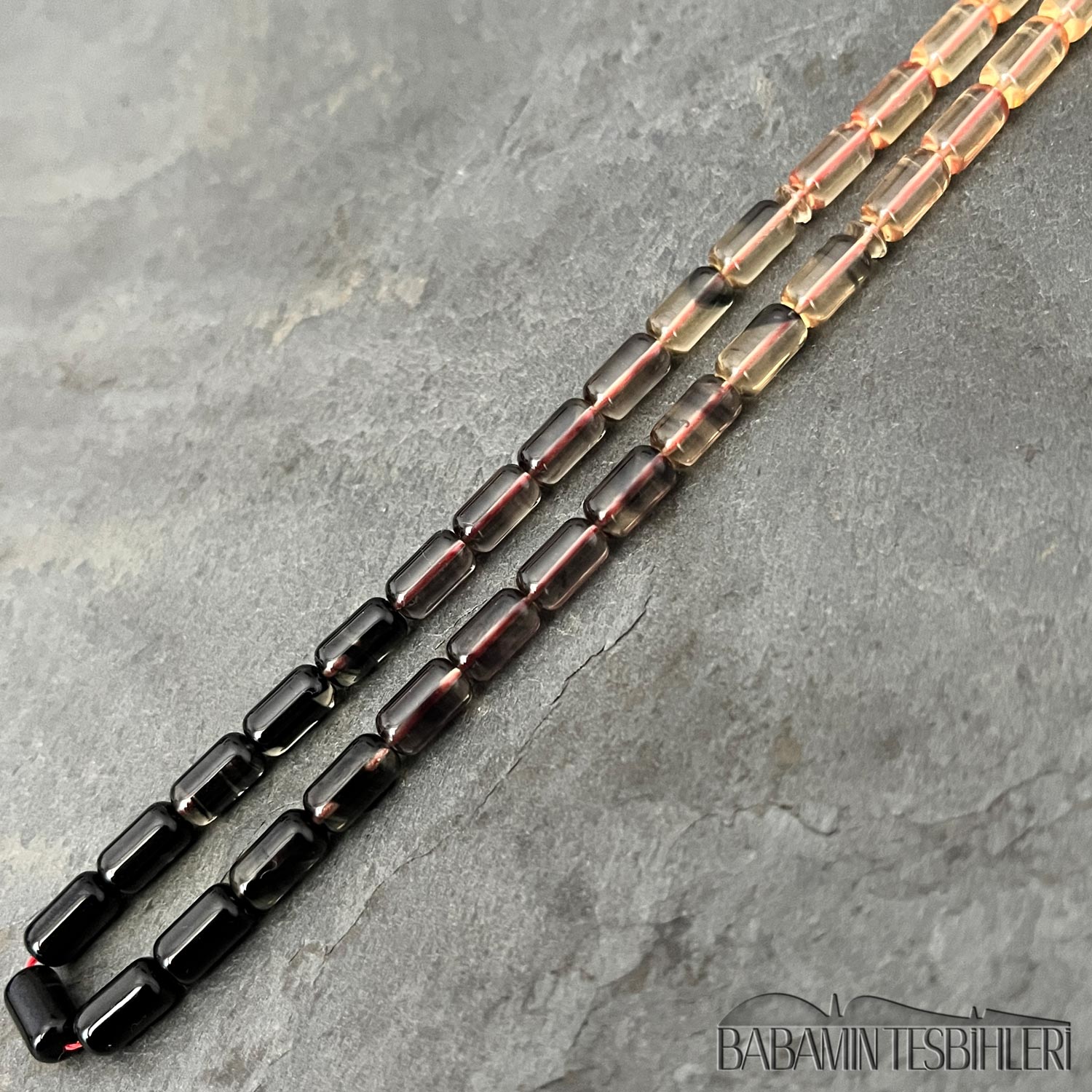 | Tesbih | Sıkma Kehribar | 5,5×9,5mm Dumanlı Süzme Dizim Sıkma Kehribar Kapsül Model Tesbih