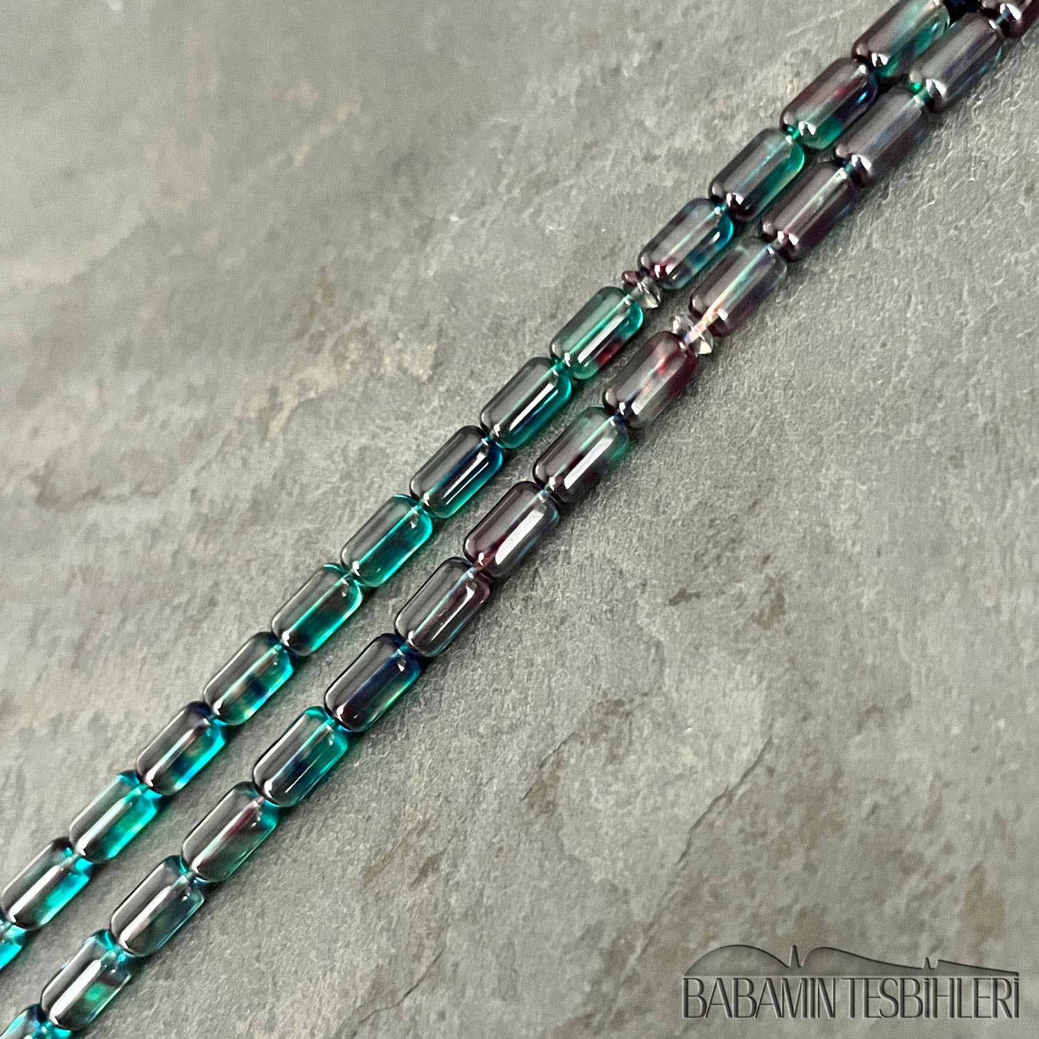 | Tesbih | Sıkma Kehribar | 5,5×9,5mm Mor Yansımalı Mavi Hareli Sıkma Kehribar Kapsül Model Tesbih