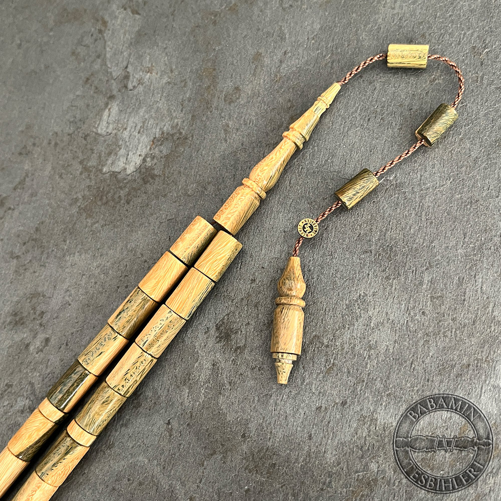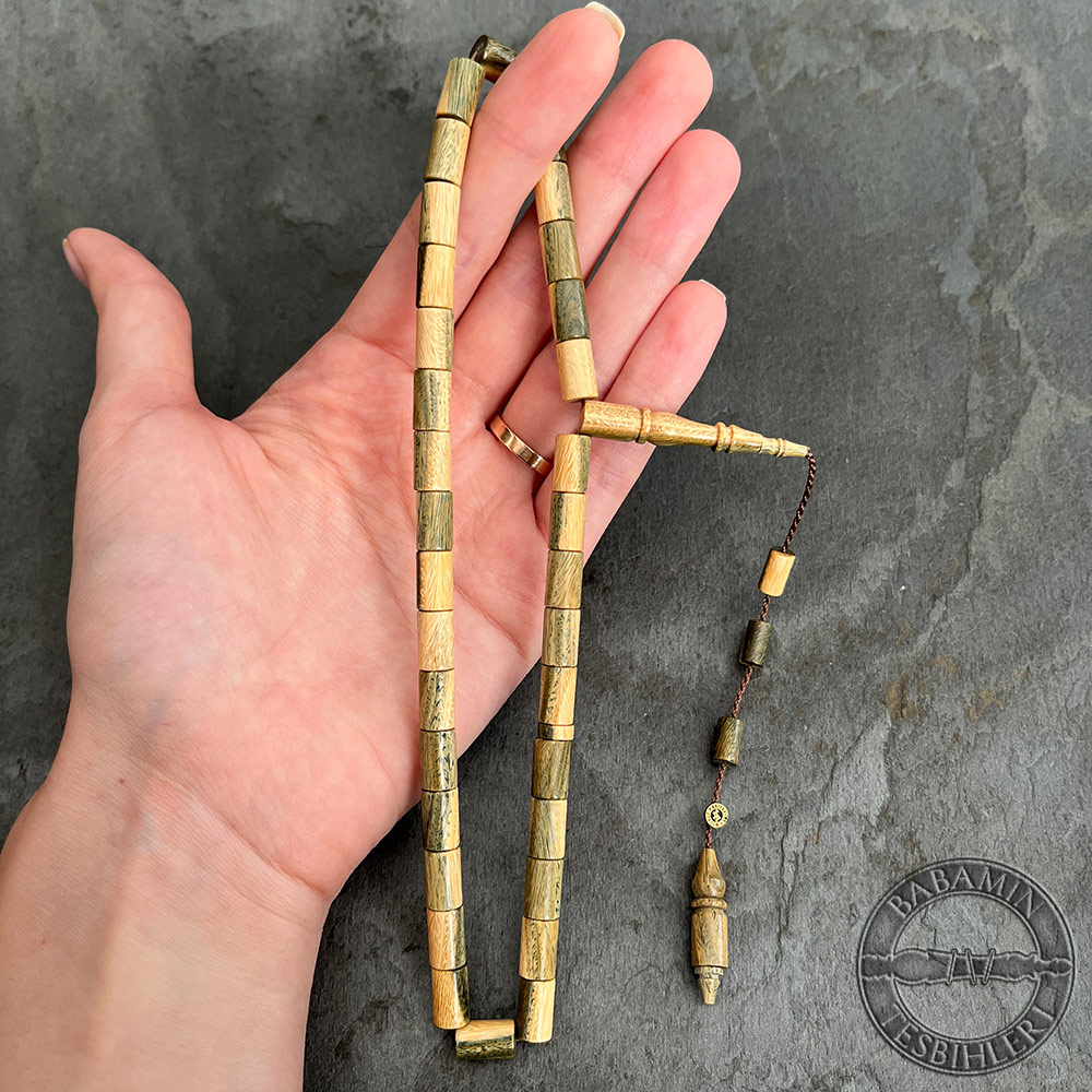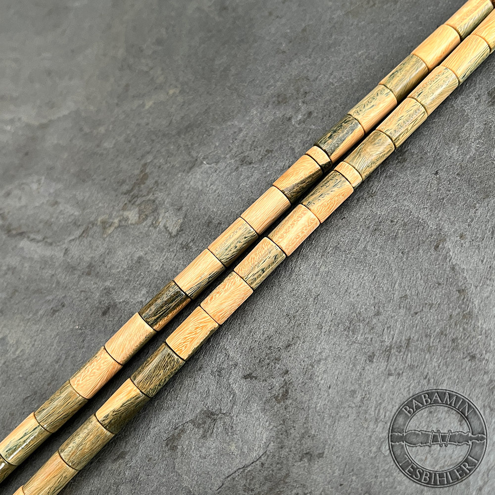 | Tesbih | Ağaç | 6,5×10,5mm Çift Renk Kesme Model Yeşil Pelesenk Ağacı Tesbih