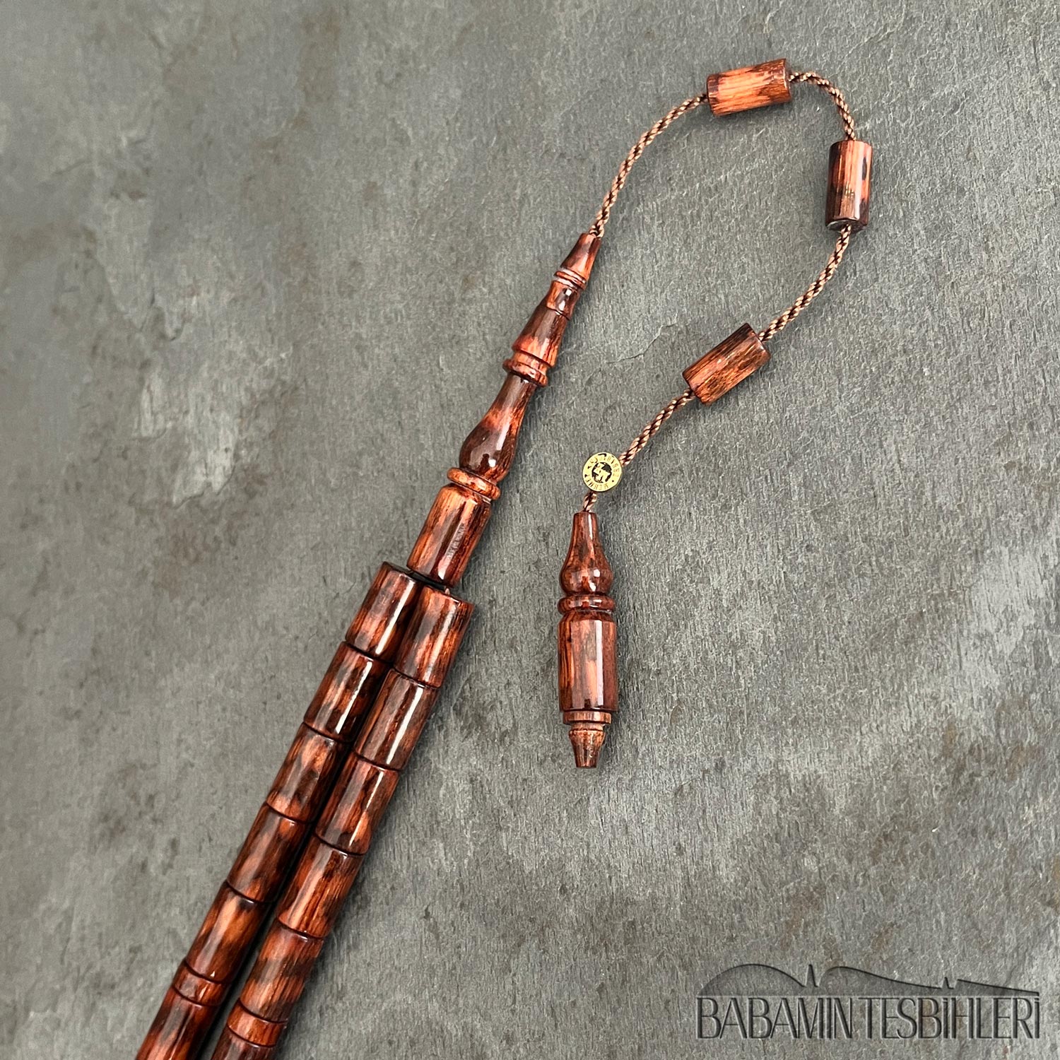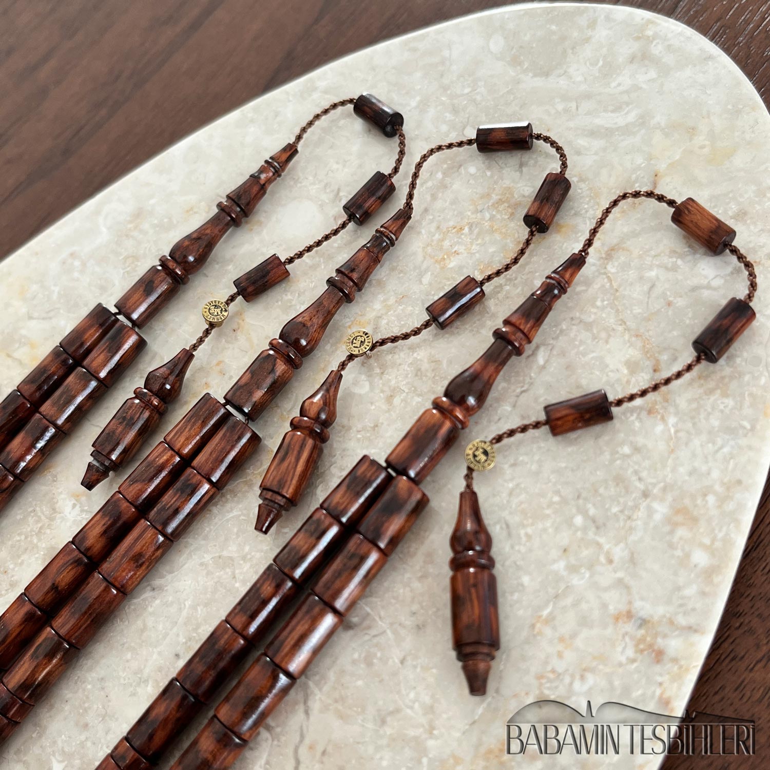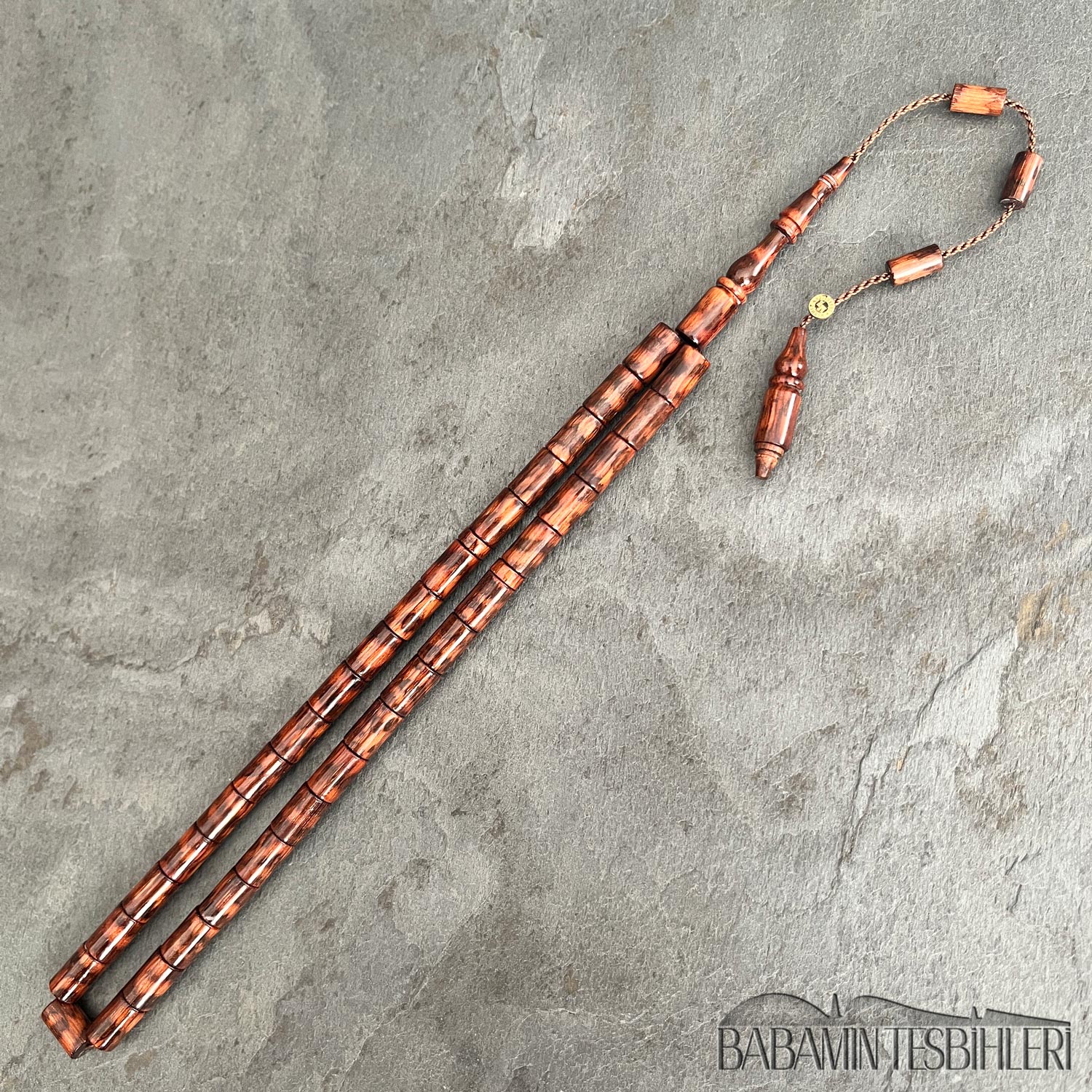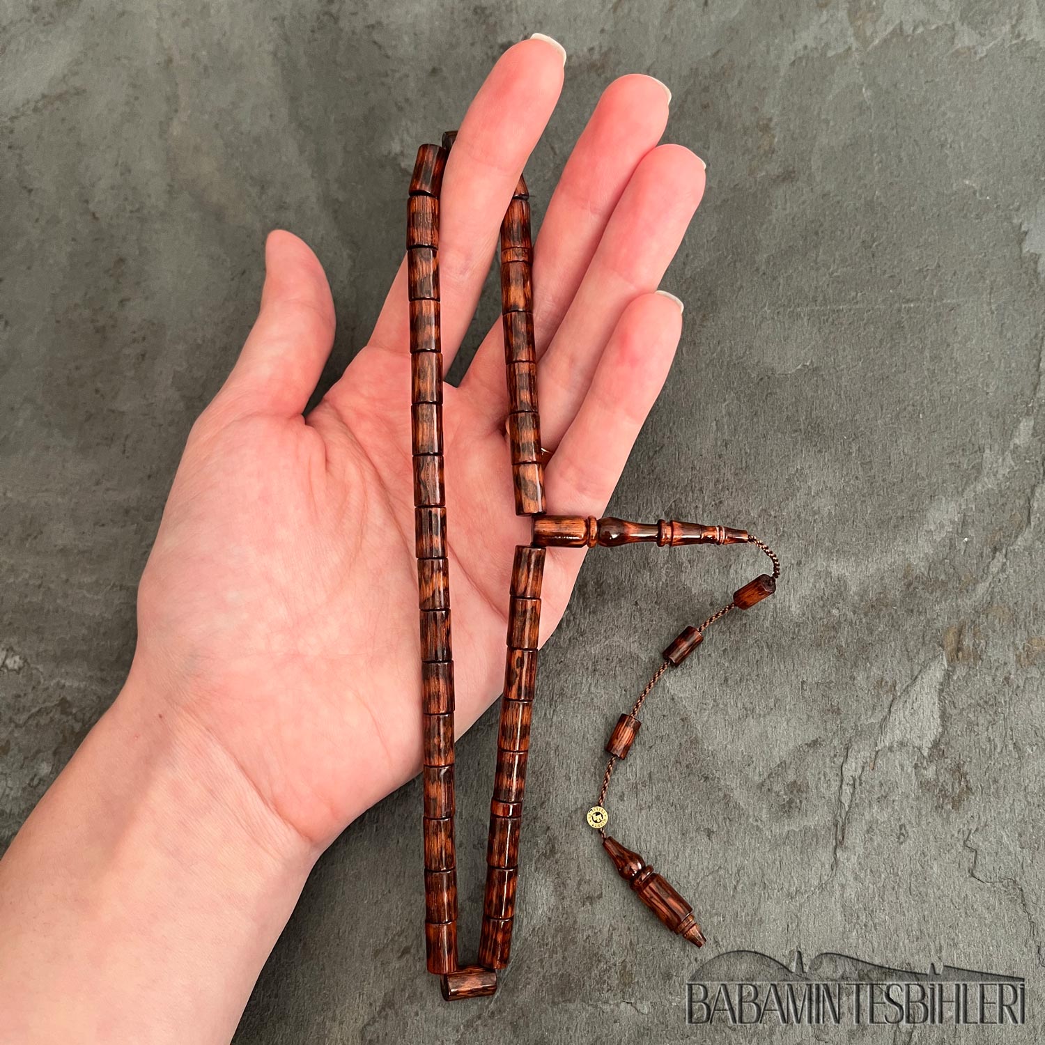 Mehmet Erbabacan Usta İmzalı 33’lük Yılan Ağacı Tesbih Hammaddesi: Yılan Ağacı Modeli: Kesme Model Tane Boyu: 6,5×10,5mm İmame Boyu: 34mm Toplam Uzunluğu: 35cm Not: Yılan ağacının en kaliteli, yoğun hareli kısımları özenle seçilerek yapılmıştır.