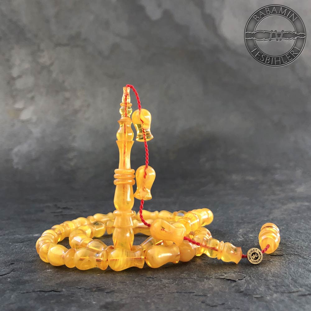 | Tesbih | Sıkma Kehribar | 7x12mm Hareli Sarı Lale Model Sıkma Kehribar Tesbih