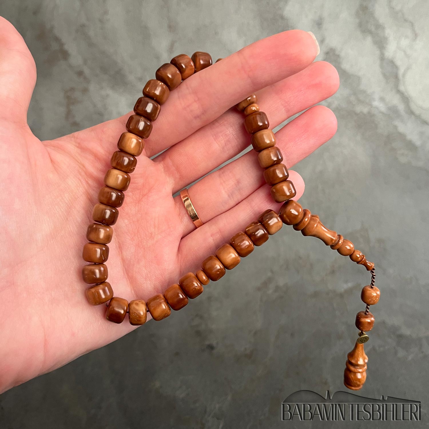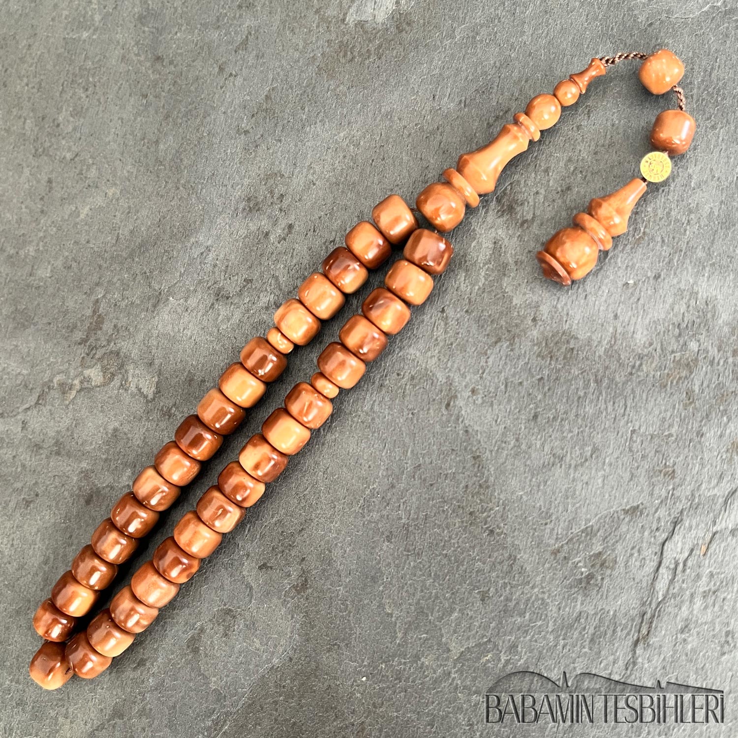 Mehmet Erbabacan Usta Atölyesinden 33’lük Kuka Tesbih Hammaddesi: Kuka Modeli: Tekerlek Model Tane Boyu: 8,5×6,5mm İmame Boyu: 31mm Toplam Uzunluğu: 22cm