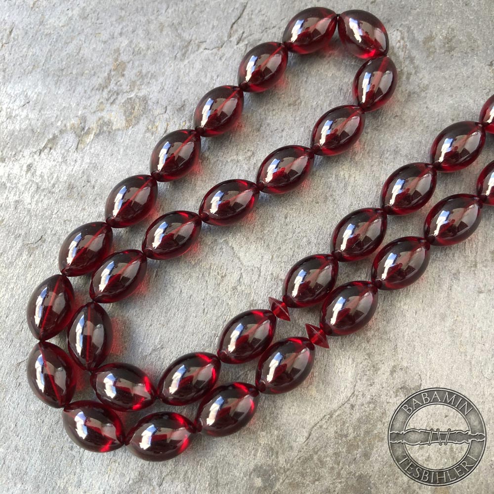 8x12mm Koyu Kırmızı Halkalı İmameli Tesbih