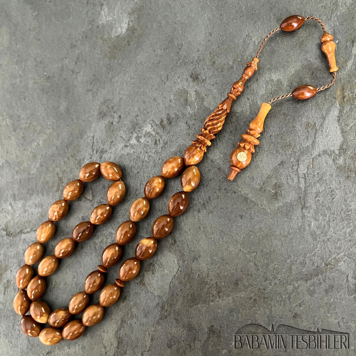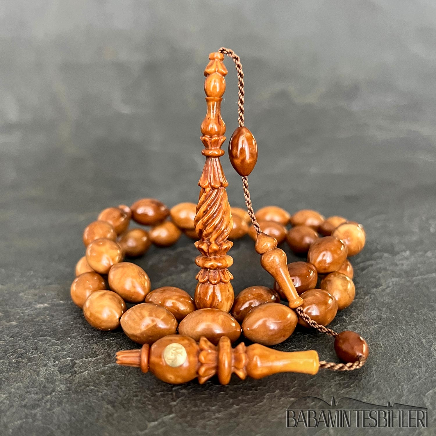 Mehmet Erbabacan Usta Atölyesinden Oyma İşçilikli Altın İmzalı Kuka Tesbih Hammaddesi: Kuka Modeli: Beyzi Kesim Tane Boyu: 9x13mm İmame Boyu: 50 mm Hitame Boyu: 38mm Toplam Uzunluğu: 41 cm İmza: 14 Ayar Altın İmza