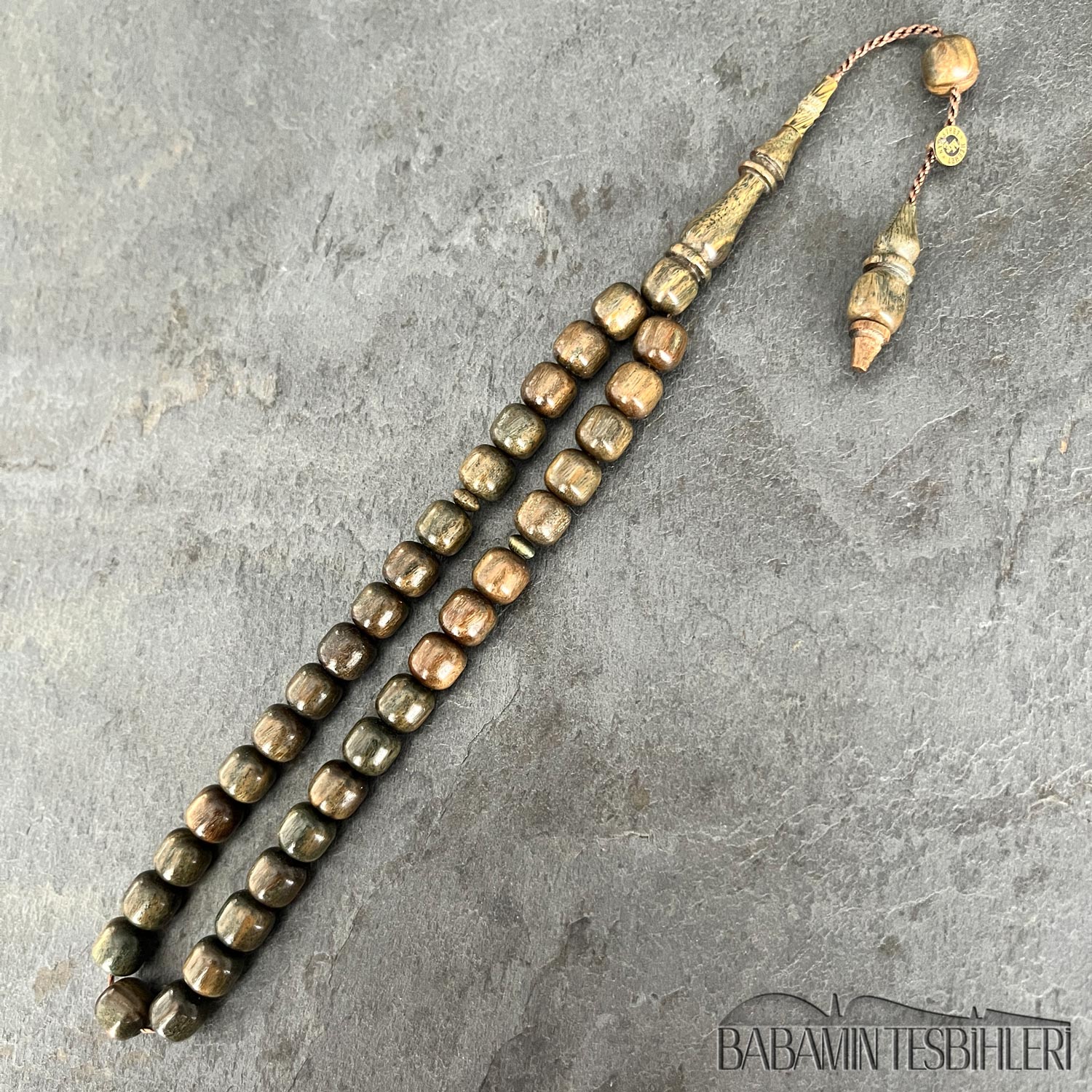 Mehmet Erbabacan Usta Atölyesinden İmzalı 33’lük Yeşil Pelesenk Ağacı Tesbih Hammaddesi: Yeşil Pelesenk Ağacı Modeli: Kapsül Kesim Tane Boyu: 7×7 mm İmame Boyu: 31 mm Toplam Uzunluğu: 22 cm